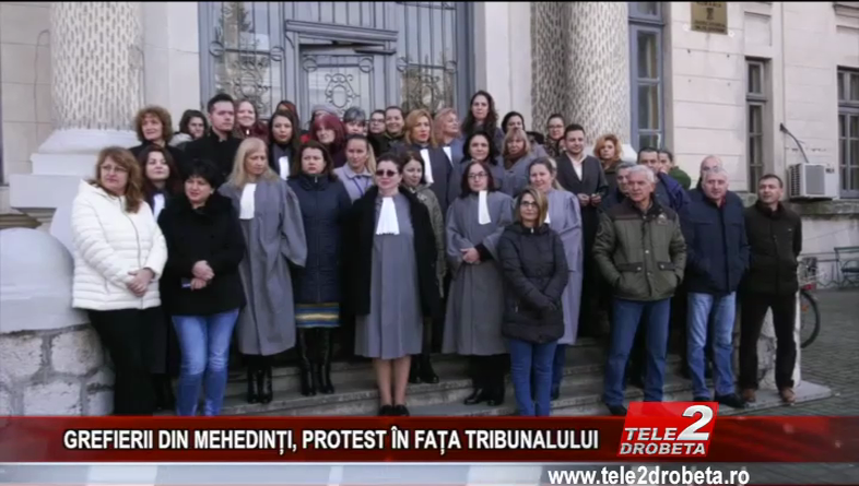 GREFIERII DIN MEHEDINȚI, PROTEST ÎN FAȚA TRIBUNALULUI